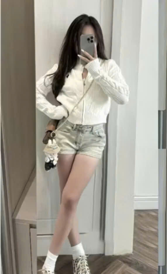 Hãy phối áo len xoắn thừng cùng quần jeans . Outfit này giúp bạn hack dáng đỉnh. Hoặc kết hợp cùng chân váy xếp ly. Bạn sẽ trông rất năng động và xinh. Đừng quên một đôi giày sneakers trắng.